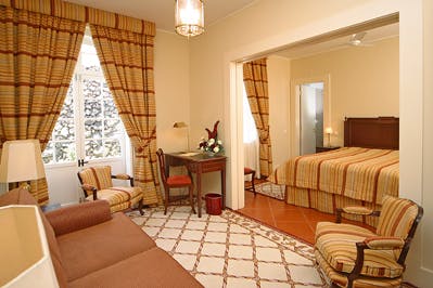 Room with living room, closet, equipped with private bathroom, Hair Dryer, celling fan, heating system, amenities, bathrob, umbrela, Direct phone, Cable TV, Internet and radio embedded on TV.